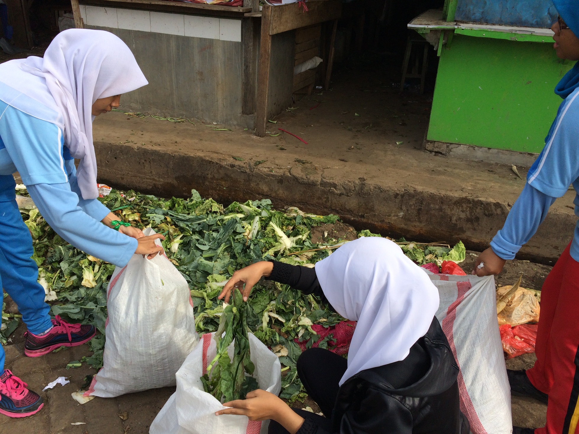 High school students at the wet market collecting green waste for composting - Credit: Danau Tanu