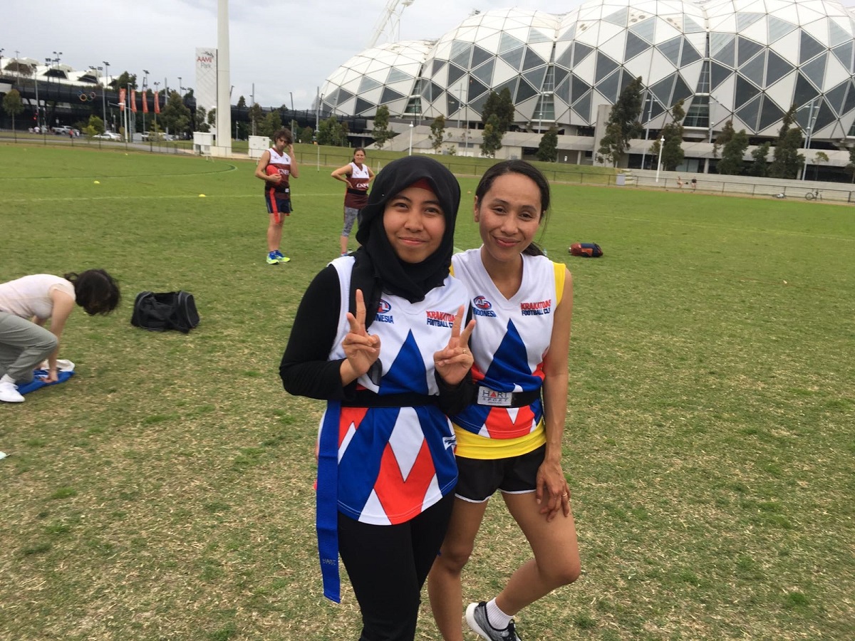 The three founders of the Krakatoas each bring their own strengths and abilities to reach out to both Indonesians living in Melbourne and locals. Nasya, a sporty Indonesian woman; Ghian, who works at the Australia Indonesia Centre and has a strong passion for the Geelong Football Club; and Iain, a relaxed ocker guy, in both languages. Shearer is a graduate from AFL Indonesia where he was part of the Jakarta Bintangs, a football club that allows Aussie expatriates to continue their involvement in footy, while also getting some locals involved in playing the game.